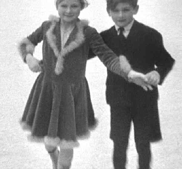 Winter sports like skiiing and skating are very popular in Austria. Both are not only sports, but popular passtimes. This is a charming shot from Vienna, dated 1936. The boy and girl, both aged about 10-11 years old are already accomplished skaters and dance gracefully with each other on the ice. This photograph was taken from newsreel footage at one of the Viennese skating rinks. Apart from his ice skates, the boy wears conventional dress-up clothes for an Austrian lad of his age--a dark short