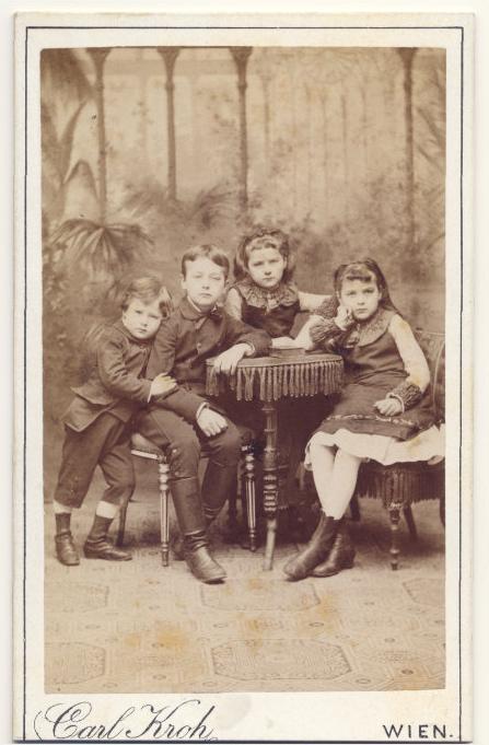 We see the same photographic formats in Austria as we see in other countries. As a result of our limited Austrian archive, however, we have not yet found examples of the various types, especially the dated examples that are useful in developing chronolohgical trends. We have found very few early Austrian photographic images like Dags in the 1840s and Ambros and Tintypes in the 1850s. The rarity of these early photographs is similar to the pattern in Germany. This changes with the appearance of the albumen process and negative printing. We only begin to see substantial numbers of Austrian photographs with the appearance of the CDVs (1860s). We also see tintypes but not yet early ones. From this point the photographic industry in Austria seems very similar to that of other German states. (Germany was only unified in 1871). We see similar variations in CDVs that we see in America and other European countries. Early CDVs had plain front text and pointted corners. We are not sure yet when cabinet cards appeared, probably the late-1860s. Even so the CDV continued to be popular format. By the 1870s we begin to see decorative backs. Here we see a CDV with a colored mount, looking somewhat lile a caninet card (figure 1). Notice the rounded corners. New cabinet card mounts appear in the 20th century. We also see postcard back prints along with silver nitrate printing.