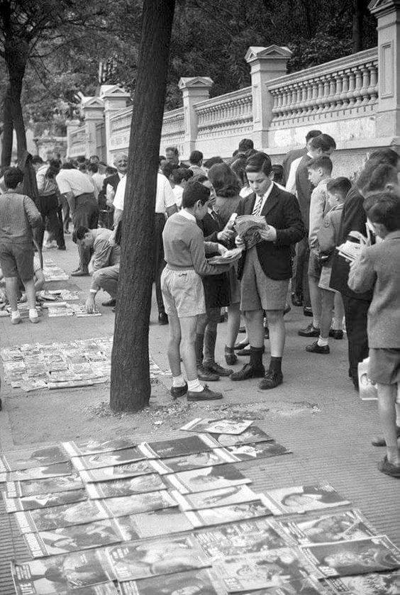 Parque Rivadavia is a park in Buenos Aires. The view of the park we have here is undated. An Argentine reader dates it to 1965-67. We visited Argntina and Buenos Aires in 1968 and we did not see many boys wearing short pants. We would date it a little earlier. the early-60s or late 50s. Bit as we tend to give greater crrednc to our country contrinutors will archive it in the 60s. The park was particularly popular with boys. On Sundays afternoon boys would gather there to exchange, sale or just look for comic magazines. Girls weren't all that intereted in comics. Notice thee is nt a girl to be seen. Boys in contrast loved them. I remember how much I enjoyed them. I liked Disney Superman comics. By vrother like war comics. This was the case in other countries as well. We see boys wearing quite a variety of clothes. Some of the boys are dressed up and wearing ties and jackets, maybe the school uniform. We see short pants and knee socks. Some of the boys are dressed more informally, but no one is wearing sneakers or jeans.
