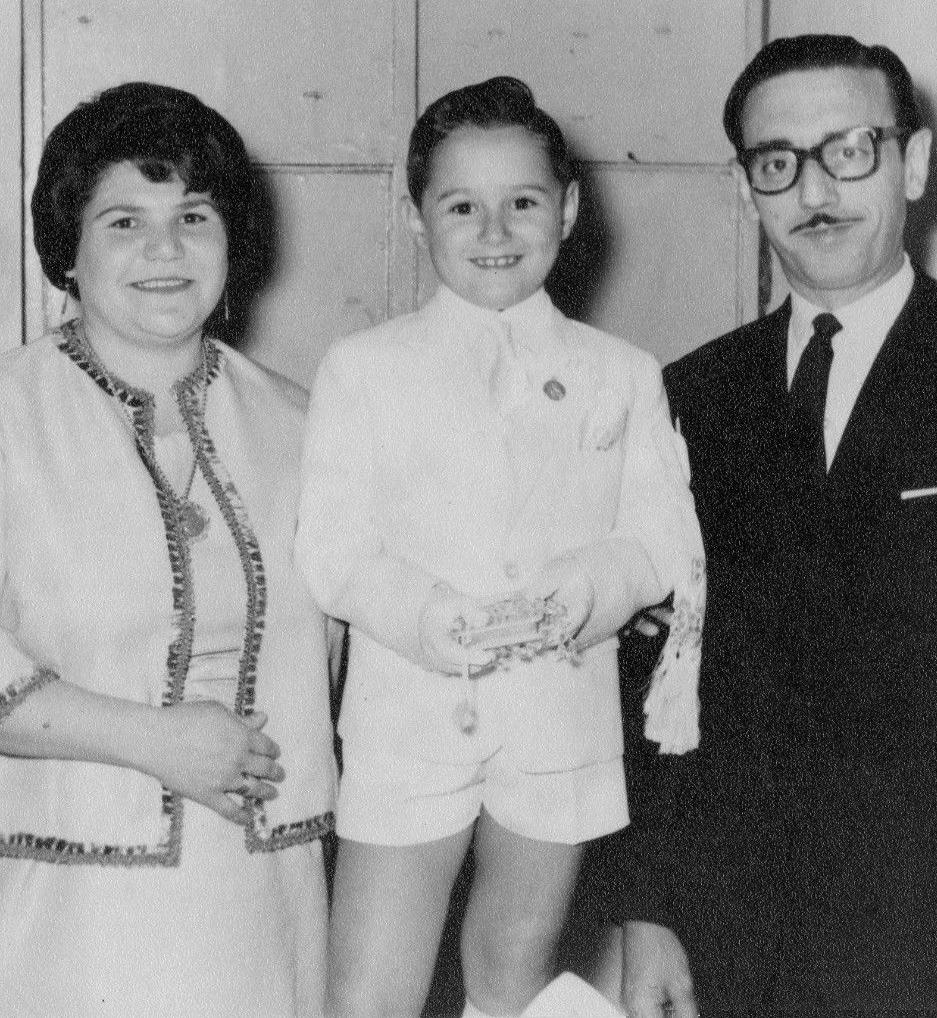 Here we see a proud Argebtine family with their son dressed up for his First Communion service. He would be about 6 years old. He wears a white short pants suit with a white tie and white knee socks. Since everything is white it is hard to see the details, but he also has a whte tie, white leeve bow, and white gloves. The portrait is not dateds, but we would guess was taken in the late-1950s. We note Argentine boys wearing both light and dark suits. A few boys wore sailor suits.