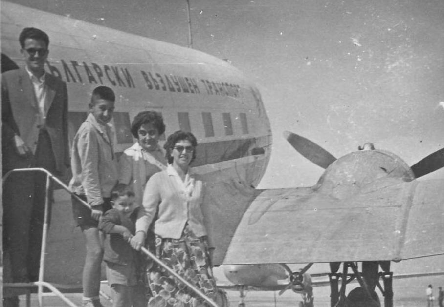 We note a photograph of an unidentified Bulgarian family, a mother and father and their two sons about 5-11 years old, perhaps with their grand mother. They are shown getting off a Soviet or Bulgarian air liner in 1961. At the time, a few DC-3s were still being used in America. Flying suggess that they the father had an important post in Bulgaria's Communist Governmnt or the Party. Ordinary Bulgarians did not travel by air. Bulgaria was one of the poorest of the Soviet satellite contries and not very many Belgarians would be traveling by air and even fewer families. Every one is dressed up for the flight as was common at the time. The father and boys all wear suits. Although taken in Bulgaria, the airplane may look familar. It was the Soviet version of the Douglas DC-3, the iconic C-47 of World War II fame. The Lisunov Li-2, was a license-built version of the DC-3, built in some numbers during and after World War II by the Soviets. It was virtually an identical copy except that the Douglas specifications were in inches and feet and had to be converted to metric measures for Soviet tooling and other minor changes. And the Soviets added offensive armament. The Soviet plant near Moscow was one of the many factories that the Soviets moved beyond the Urals after the German invasion. After Whe war, the planes were used both for military transports and civil aviation in the Soviet Union and satellite countries--in this case the Bulgarian Airlines. A few even made their way to China and North Vietnam.