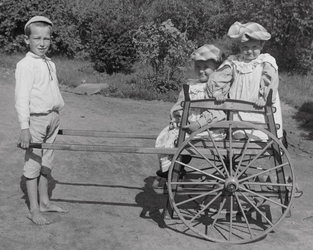 And of course children also have fun with vehicles likescooters, bikes and trikes, although before World War II many children could not afford them especially the nikes and trikes. This was the case in more affluent countries before the War and would have certainly been the case in Finland. And Finland took longer to revover from the War than Western Europe, because of the war damage, Soviet seizure of territory, and the need to placate the Soviets afrer the War. Bicycles became very poukar in Finlans and still are. They are evn rode during the winter. Filand is now one of the most peosperous countrues. And most kids who want them have bikes. Many kids today cycle to school, even during the winter. We also notice basic sked affairs. We notice images playing with what look like farm cars. We have seen some similar images in Sweden. We also note both play carts for children. Others were utilitarian farm carts of various descriptions which the children sometimes played on.