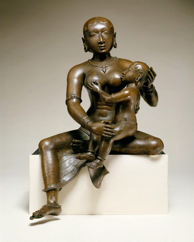 Sculture begins in India with primitive cupule art in prehistoric times at the dawn of modern humans (0.7 milion BP)---before the appearance of modern humnas. The earliest example is the Bhimbetka Petroglyphs (Auditorium Cave and Daraki-Chattan Rock Shelter, Madhya Pradesh). India is renouned for metal working. And by the Bronze Age, sculpture was the predominant form of artistic endevor. Mural painting was also imprtant. Sculpture was imprtant to all the Indian religious faiths (Hinduism, Buddhism, and Jainism) -- all except except Islam. The origin of sophisticated sculpture is found in the Indus Valley (Harappan) Civilization of northwestern India. Small terracotta sculptures have been found in large numbers. There were also pioneering bronze figures. Notable dculpturs include: the Buddhist Pillars of Ashoka of the Mauryan period, with beautiful carved capitals (3rd century BC); the figurative Greco-Buddhist sculpture of the Gandhara and Mathura schools, and the Hindu art of the Gupta period (1st-6th century AD). The female nude was epecially imprtant in Induan sculpture, which offened many Muslims. Sculptures depicted the numerous incarnations ot the many gods. They were andowed with multiples and varried heads as well as arms. Individuality was not promoted. Rather the idea was to honor to tradition and depict eternal values. The scupture was usually was based on standard ouflines. Figues were commonly graceful and slender.