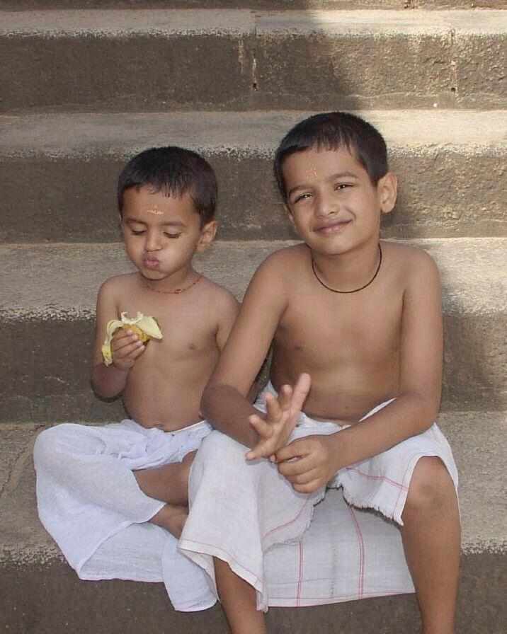 We do not know of any specifical Hindu clothing. Clothing does, however, have a role. Hindu priests in the temple wear only the basic dhoti. And we notice pilgrims also wearing the dhoti, but this is basically traditional clothing rather than specifivally religious dress. All Hindu temples prohibit footwear. Usually it is sufficient remove the footwear. Some temples have special, destinctive rules. This generally related to wearing traditional clothing rather than Western dress. Women and the girl may have to wear the sari. The men and the boys can wear only wear the lungi.