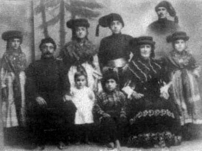 This is a studio portrait of a family from Nazaré, a port town. Given the way they are dressed, they must hasve been a fishermen family. We can assume that they are wearing their best clothing, which don't include any footwear. The portrait is undated. Since they are wearing traditionasl clothing, it is difficuult to date the protrait. Traditional sdtyles do not chaange like modern styles. We would guess it was taken in the late-19th century.