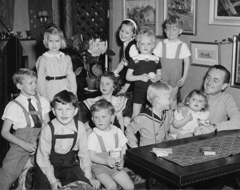 We note younger boys in the early-50s wearing blouses with Peter Pan collars. We see noth suspender anf H-bar pants. bth Hbarand strap pants. Younger boys wore short pants. We also see knitwear. We still see some sailor suits. Girls wore prim dresses. We notice knickers persisting in Sweden longer than in many other European countries, although by the 1950s but they were often worn almost to the ankles. Boys might wear short pants during the briref summer season, but this had declined uring the winter, by the end of the decade. The same is true of long stockings. Many children had snowsuits for the winter which can be very cold in Sweden. A French reader writes, "I remember a visit to Sweden when I was about 14 years old in June 1958. We stayed at a nice hotel in Stockhom. I remember noticing that the children were dressed rather the same as adults. The boys mostly wore long pants which was still not the case in France at the time."