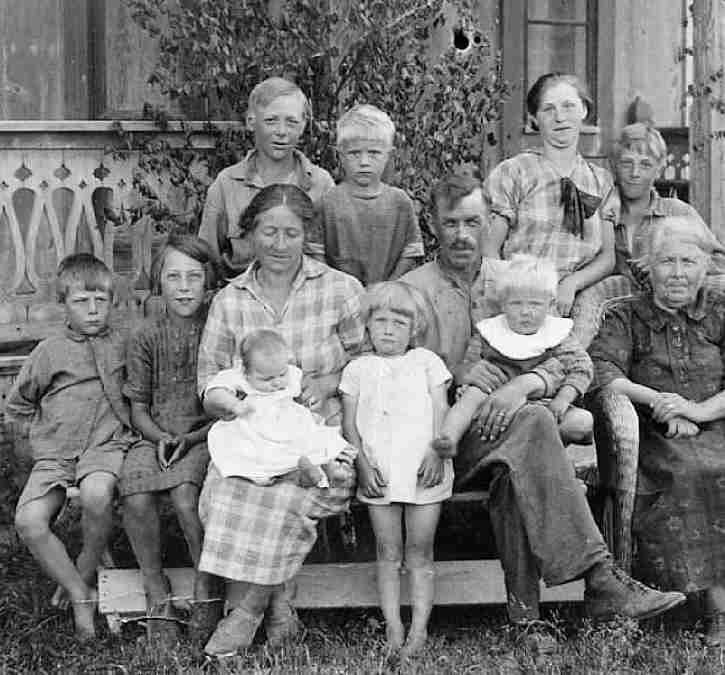 Figure 1.-- An unidentified farm family had their portrait taken during the summer of 1930. We do not have the name of the family, but they lived in Vigge, a village about 500 km north of Stockholm. The family was a good sized one with nine children and grandmother. F |