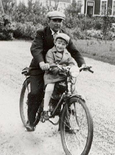 The only thing we know about this photo is that it was taken in Sweden during 1937 and that the boy's name is "Nisse". (This was the name of a character from Scandanavian folklore.) It seems to be a chilly spring or fall day. Father is taking his young son (about 5) for a ride on