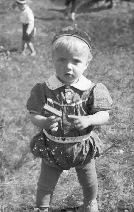 Younger boys wore romper suits like the ones worn in other countries, only with destinctive detailing. Various terms seem to have been used, including ” solbyxor ” (sunpants) and ” lekbyxor ” (playpants). We note pre-school Swedish boys wearing romper suits. Some were done with Swedish ethnic detailing. We have no details as to chronological or age trends. The boy here looks to be about 2 years old. The photograph was taken in 1938. A reader writes, "This image of the boy in rompers gives us a bit of insight into the suspension of long stockings in Sweden in 1938. The hose supporters he is wearing are single (not double or Y-shaped as in America) and are at the sides over the hips, not in front or front-and-back as with majority of German Leibchen. A minor point, but perhaps worth noting." We note photographs showing that Swedish boys were still wearing rompers in the 1960s. We note a snapshot of a Swedish boy wearing stripped romper suits in 1967.