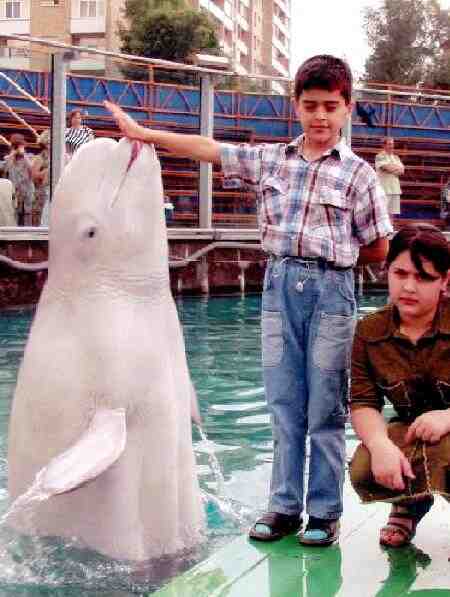 Figure 2.--Here Alex and Yulta are at the ??? marine park where he got to see dolphins and Beluga whales. The children wore their own clothes rather than the camp uniforms for this outing. |
