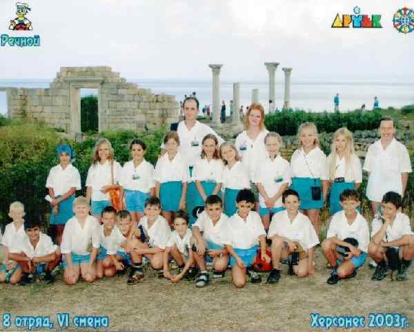 The Ukraine boarders the Black Sea and this has been the Soviet Seaside destination for a long time. The camp was originally set up in the days of the Young Pioneers but now like all the rest are independent ventures providing camping and woodcraft experience for children from Russia and the Commonwealth Countries. Alex and Yuta travelled to the Black Sea city called Hersons. In this area are the camps. This part of the city is called ‘Artek'. [HBC note: Artek was the most famous of the camps in the Soviet Young Pioneer system. There were camps scattered throughout the Soviet Union. Many had very basic facilities and locations of varying appeal. Artek was not only located on the warm Black Sea coast, but it had excellent facilities.] There are many summer camps for children in this region as well as vacation resports. The camp Alex and Yuta travelled to was called