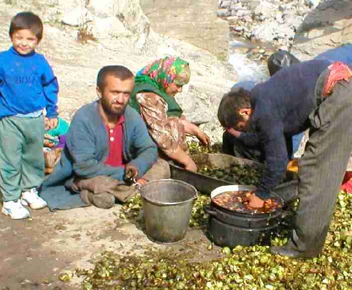 We noted that in Dunshanbe and other cities that children wear mostly Western clothes for day to day wear. We thought that traditional clothing might be more common in rural areas, but even in rural areas, Western clothing is very common, althogh not as trendy as in the city (figure 1). Even in rural areas, traditional clothing is mostly worn on ceremonal occasions. The girls and women seem to wear traditional costume more commonly than boys and men. This gender difference is epecially pronounced in rural areas.