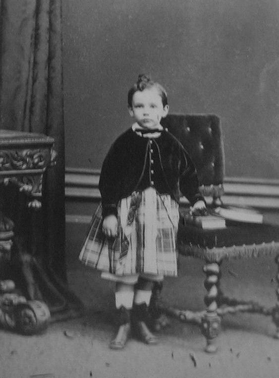 The first type of kilt is the Highland kilt most notable in Scotland and popularized by Queen Victoria and the royal family. This is the true kilt as worn in Scotland, but we see it beinh worn throughout the United Kingdom. While this was a Scottish style, Queen Victoria made it popular throughout the United Kingdom. We see English boys, mostly boys from well-to-do families wearing Highland kilt outfits when dressing up. Higland kilt outfits were expensive. Wales was a poorer part of Britain. Thus there would have been fewer boys wearing Highland kilts than in Scotland and England.