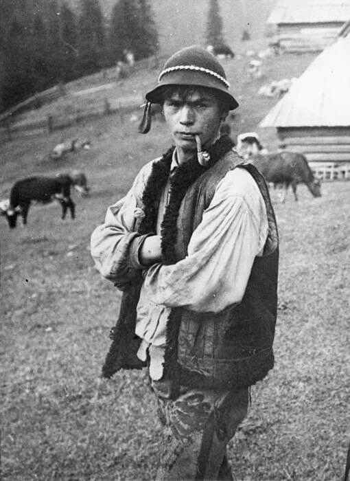 We note boys in rural areas wearing a range of regional folk costumes. We do not note any destinctive Polish garments, but tese folk styles have influenced detailing on Polish clothing. Our infrmation here is limited. We note peasant shepard teenager from the Zakopane area of Poland in the Carpathian Mountains.