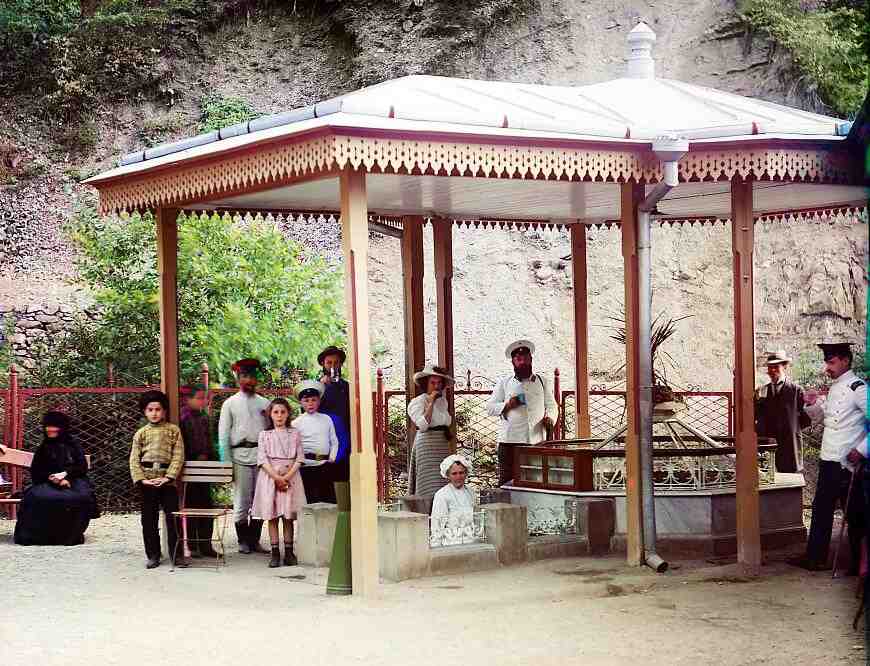 We have begun to collect information on popular outings in Russia. Until the Revolution they followed the general European pattern within the constraints of geography and socio-economic structure. An exception was the large rural serf and former-serf population which were only barely participating in the money economy. The growing urban industrial work force was not well paid less able to take vactions especilly seaside vacations. Here geography was also a factor. Tsarist Russia had a relatively small middle class compared to America and the industrial European countrues. This all affected the outings that the Russian people were able to take. The Bolshevik Revolution fundamentally changed Russia. The middle-class expanded, but workers continued to be poorly paid, earming only a fracrion of their ciounterparts in the western capitalist countries. . There was an effirt for industrial enterprizes to reward workers with expense-paid vacations. We have, however, very limited information on this. Such trips were mostly by rail. Vert few Russians had cars until the demise if the Soviet Union (1991). We notice a range of outings popular in Russia, often as part of family activities. One such outing was to parks, although we do not yet know much about Russian parks. The Soviet regime placed some emphasis on building city parks to provide some afordable recreation for the epnding industrial proleterit. Beach outings were less common because of the climate, geograophy, and economic system. Russia has an extensive coastline, but as most of it is along the Arctic Ocean and Bearing Sea was not exactly condusive for beach going. There were some beaches on the Baltic. The Baltic republics were part of the Tsarist Empire and during World War II, Stalin seized them. There were also Black Sea resorts such as Yalta, but until the Revolution, they were only available for the well-to-do. One popular venue during the Tsarist era as in the rest of Europe was warm mineral spring spa (figure 1). Some of the European resorts were world famous. We know less about the Russian springs. Perhaps the best known outings for Russians was spending the summer in dachas--summer country cotages. Some were year round second homes. But only the well-to-do could aford dachas.