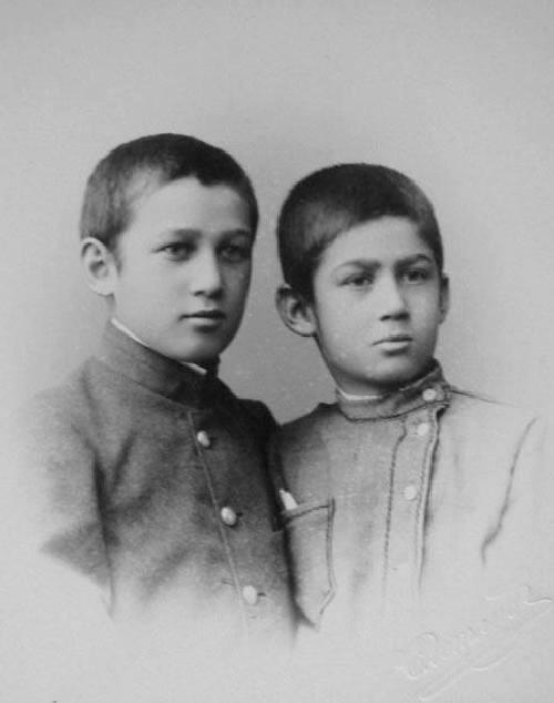 We don't see any notable Russian suit sytles, only the same basic styles as worn in Western Europe. A large part of the Russian population lived in the countryside and until 1861 were serfs, esentially medieval peasants. Few serfs had Western garmehts like suits. Their cgaacteristic garments becameknown as a Russian blouse and many Russian boys eben in the city negan wearing thesevgarments. Here we see a boy wearing a Russian vlouse suit bwhie his brither wears a suit jacke (figure 1). Russian blouse suits at the turn-of-the 20th century even became popular in the West, a alternatuve for a formal suit for a younger boy. This gradually went out of style after the Revolution, apparently a rejection to traditiinal clothes by the Stalinist authorities. At the same time Stalin was supprssing the peasabtry and collectiving agriculture. We mostly see booys wearon stndard suits as the Soviet Union recovere \d from the tragedy of World War II. We see boys wearing suits to school for a while jackes with militaet touuches. We nostly see navy blue jackets. We see some stylish suits, but we ae unsure hiw common they were.There were fashion magazines, but he style depicted were often not available in the stoes. And their was nothing like the Sears and Montgomery wards catalog. Mostly we see stanfard single=breased jackets for boys.