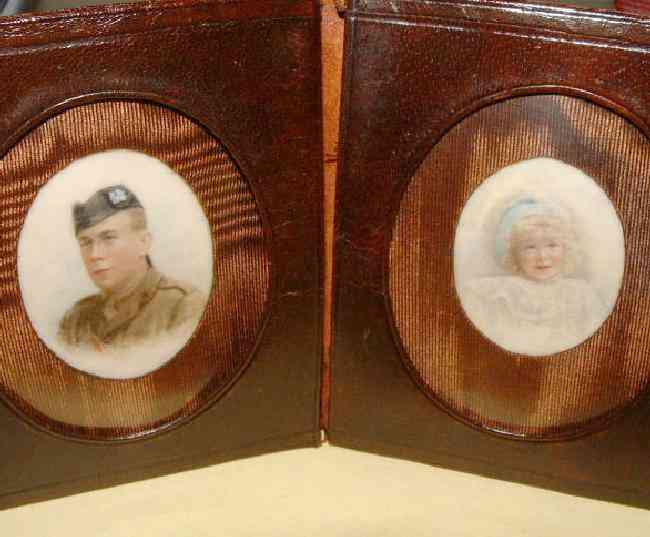 differences are between a Tam O'Shanter and Balmoral. Tams are still wrn in Scotland, but rarely by boys. The only boys now wearing them are boys dressed in Highland kilts for Higland gaterings or other ethnic event. We notice some images of Scottish boys wearing tams. They were also worn by girls. We are not sure how common they were or what age boys wore them. We believe that they were worn by younger boys. We have seen both younger and older girls wearing them. There may have been social class connotations. We have limited informatioin at this time. Most of what we have found comes from the period before World war I. A good example is an unidentified younger boy with some chums in 1910. One image we have is the portrait of a little boy carried by a Scottish officer in World War I (figure 1). To see his father and how the portraits were carried, click on the image. We see two unidentified boys at a seaside resork wearing fancy tams, we think in the 1890s.