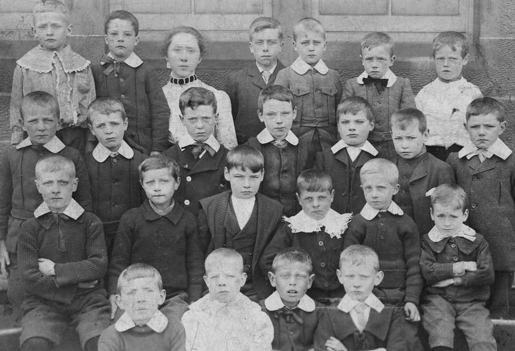 We do not have much information on Scottish shirt-like garments yet. We see blouses, shirt waists, and shirts. Gradually in the 20th century we see casual collarless shirts like T-shirts. A popular 20th century stle was the Rugby shirt. We seem to see more of these shits in England than Scotland. As far as we can tell, Scottish and English boys with only a few minor differences wore the same styles of shirt-like garments and collars, at least since the 19th century. There may have been differences begore that, at least in the Highlands. Lowland Scotts basically were Anglicized much earlier. After the Highland Clearances (18th century), English fashion began to affect the Highlands as well. With the invention of photography, we are able to follow this in some detail. One of the best ways to follow this is school portraits which had become common by the late-19th century. Many garments are difficult to follow with the children all grouped together. The collars in cotrast are almost always vissible. School portraits have the added advantage that many are dated. We see a lot of detachable Eton collar at the turn of the 20th century. And we even a few large Fauntleroy collars. Gradually detachable collars declined in importance.