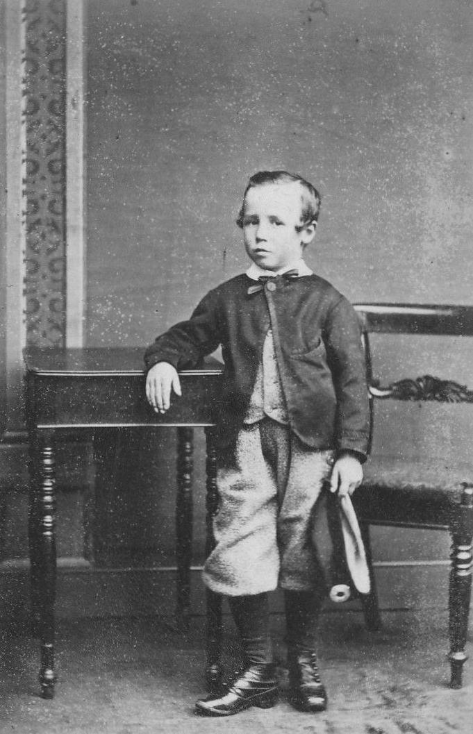 There are two isues concerning color. There are both the subject of matching suit garments and then different color shades used for suits. First, at the mid-19th century we see men and boys wearing suits that did not match, primarily meaning different colored jackets and pants. Vests might also vary. This could mean different colors or also different patterns. This normally but not always meant a different colored jacket or a jacket with a pattern and solid colored pants. This was not always the case as we also see patterned pants. Rarely do we see two different pattens for th jacket and pants. We note mostly matching jackets and pants by the 1870s. We are not yet sure about the 1860s. Second, is the actual color shades used for suits. Unfirtunately the black and white photography of the 19th and 20th century provide very little color information. So we are not sure about the 19th century. There is some information, including paintings, coloied images, and catalogs. We do note that in the 20th century grey became especially important for boys's suits.