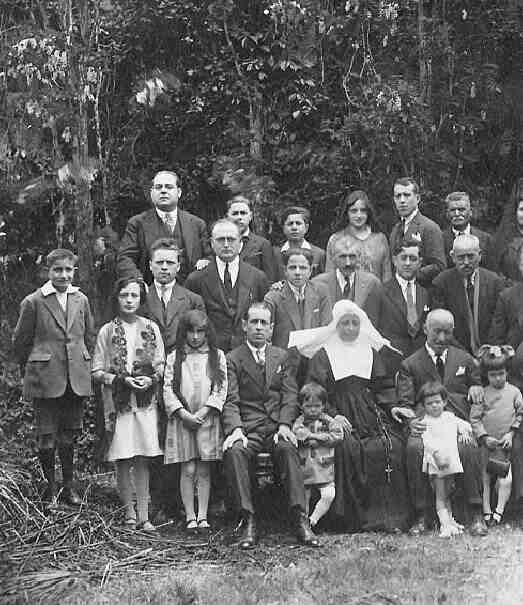 We also note a large extended family in 1914, but do not know where they were from. Most of the HBC family pages show the nuclear family. Here we have a large extended family. Judgeing from the way the women are dressed, it was a conservative family. They were obviously a good Catholic family. The nun is presumably a member of the family who has taken vows. We see a mumber of children wearing a variety of outfits. One boy wears a short pants suit. The open collar style was popular.
