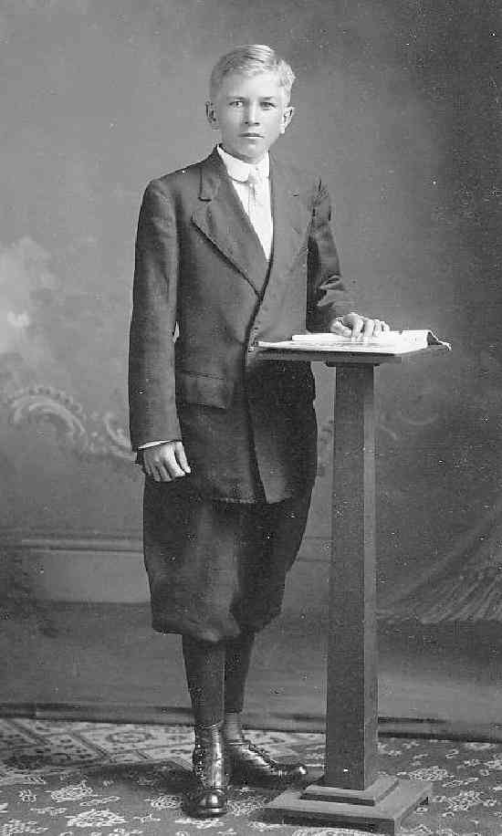 Public speaking before World War II was much more important 6than the case today. Children would take classes in "speech". Participating in debates were very important bnd often staged in schools. Children would be expected to give recitations for family and visitors at home. This was especially true of middle and upperclass families. Perhaps this was more common in school because until after World War II, many children did not finish highschool. We are not sure that the American boy here is involved in public speaking or debate, but it certainly looks like it as he is standing there with a book on a podium (figure 1). Perhaps he had just finished junior high school.