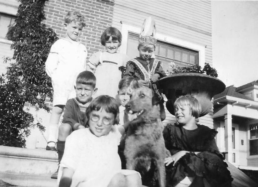 We see all kinds of play tops. Younger boys wore button-on play suits, often with short sleeves and even sleeveless tops. "T"-shirts became very popular in the 1930s. Knickers standard during the 1920s and still very common in the 1930s. Youner boys were the most likely to wear short pants. they were most common with affluent families which were more apt to follow English and other European styles. Shorts were most common in the Southern states and California. A variety of play clothes for little boys coveralls were also worn. We do not yet seen many jeans, but younger boys might wear denim or corduroy coveralls some of which had bib front. Boys wore rompers in the 1910s, but by the 1920s had become more trim and were only worn by girls. Rural boys commonly wore overalls. Most older boys wore knickers for both school and play. In the early 1920s knickers were worn with long stockings or knee socks, but by the 1930s it became common to wear them with ankle socks--especially during the summer. Knicker suits were usually not worn with ankle scks, but play and casual knickers commonly were by the end of the 1930s. Overalls were commonly worn by rural boys, but city boys had not yet begun to wear what we now call jeans. Sneakers became very common for play, but were not very common for school. Unlike Europe, strap shoes and sandalsere not common even for play, but younger mostly pre-school boys might wear them. They were common for girls which is probably why the boys did not want to wear then.