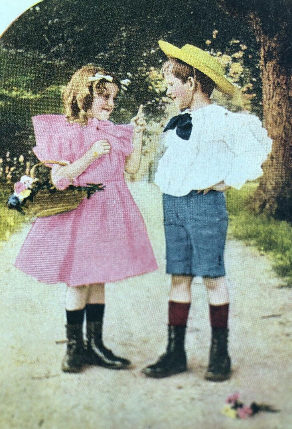 Men and women as well as the kids dressed formally in the 1890 even for occasuins that we now see as casual evernts. Parties were definitely a time to dress up. And this included the kids. The children here show off good examples of party outfits. A reader reminds us, "It is also possible that it is not a party clothes but an outfit for an outing such as going to the park or something else; in the 1890s people dressed more formally for public occasions." Kids at the time were always dressed up in their best clothes for parties. And in the 1890s that could be very fancy oufits like the omes we see here. Younger boys might wear kilt suits or Little Lord Faunteleroy suits. During the summer they might just wear the fancy Fauntleoy blouses without the suit jacket as we see here. These blouses had huge ruffled collars and were often worn with large floppy bows. We also see sailor suits. Older boys might not have Fauntleriy suits, but often were decked out with Fauntleroy trim like the large collars and floppy bows. Girls might wear fancy dresses with elaborate decorative elements such as ribbons and ruffles. White was an especially popular color for party dresses. We do not yet see huge hair bows, but we do see some smaller bows.