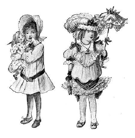 Look here, upon this picture, and on this! The girl with the doll is all ready to have a good play in clean or in dirty places and still be comfortable and happy. But her companion can't venture to have a good time where there is any “nice dirt" to play in, and looks thoroughly miserable in being so much overdressed, with a hat old enough for her mother, and furbelows and trimmings quite out of place on a child.