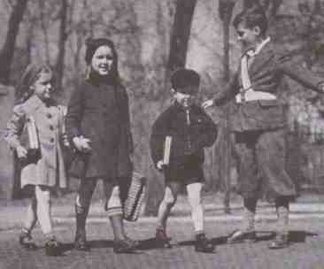 Headwear was still common, but not nearly as common as it was in the 1920s, especially with children. We see large groups with only a few kids wearing headwear. The standard headwear for boys in the 1930s, espevcially the early-30s, was the flat cap, but they were no longer universal. And by the end of the decade had become seen as rather old-fashioned. Younger boys might wer berets. A few boys had baseball caps. We see some boys wearing beanies. Thre were also winter caps with ear flaps. A popular novelty cap style was leather aviator helmets with goggles.