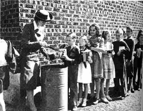 ![]() Figure 1.--After the Japanese attacked Pear Harbor on December 7, 1941, America entered the War and many scences from the home front show the role of children. Note the boys at this school about 1942 wear shorts, knickers, and long pants. |