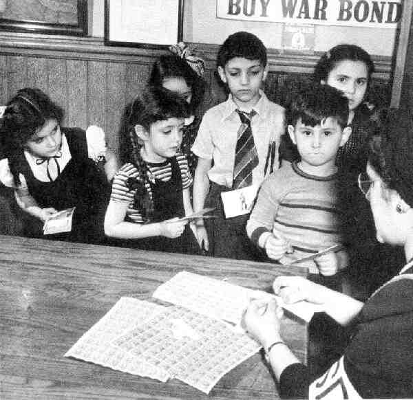 One way of financing the War was selling war bonds. Children could get a little booklet and each week had a chance to buy 10 cent stamps. When you filled up your book, you got your war bond. It was one of many ways that people on the home front were made to feel that theyb were doing their part in the war effort. Schools often sponsored rallies, parades and cultural events to raise money to buy war stamps and bonds to help finance the war. Dances were especially popular. These were conducted through both schools and other organizations. The 10 cents for Liberty stamps were the cost of a comic book. Many children would bring a dime in each week to buy a stamp to put into their book saving for a liberty bond. A liberty bond could be purchased for $18.87. It would mature to $25 in 10 years. Doesent sound like much, but American school kids purchased over a billion dollars worth os stamps to buy bonds. The stamps were sold by teachers or the mothers who volnteered as SDAs. Interestingly, the Government continued selling liberty stamps at schools several years after the War was over. I remember buying them in the late 1940s.