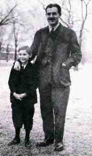 Figure 5.--Ernest by 1923 had become a published author. Here he poses with his brother Leicester wearing knickers. Their father did not approve of Ernest's work.Many different combinations of dress and hairstyle for boys were possible. Yet most of them managed to suggest in one way or another that the child in question was indeed a boy. In the age group between 1 and 2 years, perhaps as many as 20 boys in a hundred garbed and coiffed in ways that made them indistinguishable from little girls, The vast majority, however, were identifable by gender. Boys with long hair were either put into boys' clothes or into girls' clothes marked by distinctively boyish touches, while ???? who were attired in altogether girlish clothes had their hair cut short. After the age of 2 years, the number of boys who looked exactly like girls fell off to something like 5 percent, and there is some evidence which suggests that the percentage was considerably smaller. Thus, a sample composed of six hundred illustrative items drawn from widely differing sources contains only one picture of a boy between the ages of two and five whose masculinity is not readily recognizable. An illustration in the July 1897 issue of the dress-Pattern magazine, The Standard Designer, depicts a child of three or four with shoulder-length locks wearing a pleated dress with puffy sleeves, lace cuffs, and a broad lace collar. Were it not for the legend, Little Boys' Apron, beneath the picture, one would think that the child was a girl.