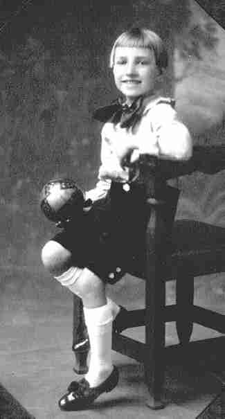 Short styles became dominant, especially after World War I (1914-18). Boys no longer wore ringlet curls. Mothers had to give into poular fashion which no longer saw ringlets as accptable for boys. Ringlets became a decidedly girlish fashion. We do see mothers postpone hair cuts for younger boys and allow natural curls to grow. Most boys after about 3-4 years wore short hair. Cropped hair was not real common. Short cuts seem popular, but to a length that could be parted. The hair was common cut well around the ears, but precise lengths and styles varied, in part because of the varied nature of hair. The front of the hair varied. Younger boys continued to wear bangs, but older boys treated the front of their hair in different ways. Actually the attention in the 1920s was off the boys and focused on the girls. Girls and young women as casual fashions became more popular and skirt lines rose, decided to "bob" their hair. The term "bob" in connection with cutting hair short seems to have come from the term for cutting a horse's tail short ("Bob-tailed nag"). A celebrated ball room dance in the 1910s, Irene Castle cut her hair short (1915). The cut came to be known as the "Castle Bob" and after World War I many girls and young women embraced the style. For girls it was common bangs at the front and hair over their ears at the side. Celebrated novelist F. Scott Fitzgerald even wrote a short story, "Bernice Bobs Her Hair", for the Saturday Evening Post (1920). Both boys and girls wore commonly wore bangs in the 1920s. The primary dufference was the length of hair at the sides. Here mothers had some discression, at least for younger boys. The complete history of the decade was not just short hair. Ringlets came bacl with a vengence at the very end of the decade, at least for little girls. This resulted from a spectacular little girls in the movies--Shirley Temple. This trend florished in the 1930s.