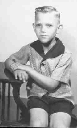 Boys' fashions in the period from World War II through the 1960s. We see the increasing popularity of casual styles. Suits declined substantially in popularity. Suits were less commonly worn as casual styles became increasingly accepted when families moved to the suburbs. One casual style popular in the 1940s and early 50s was an openecked shirt worn with a wide collar that did not button at the neck. Suits changed from large lapels in the 1940s to very narrow lapels in the 1960s. Flashy sports jackets with contrasting fabrics in the 40s and early 50s changed to more conservative styles in the 60s. Madras and searsuckets jackets were popular. Even by the 60s, some younger boys were still wearing them with short pants. Knickers began to become less common by the early 1940s and were not commonly worn by 1945. Major changes wew notable. By the end of the period only very small boys were dressing up in short pants. Two major stalwarts were introduced, jeans and "T"-shirts, staples which are now worn around the world.The "T" shirt becamne a boys' standard, especially striped shirts. Preppy styles like button-down shirts were popular. Boys moved very quickly from short pants and knickers to long pants. Little boys commonly wore shorts, but by the early 1950s most America boys wore long pants, often jeans. Jeans for pre-teen boys might be lined in red plaid flannel. American boys wore jeans in the 1950s, both for play and school. We see shorts at school in thge 1940s, but by the 1950s they were not very common. Jeans were not considered fashionable, however, and many secondary schools did not allow them, although his had begun to change by the late 1960s. The move toward casual clothes was accentuated by the Beatnicks of the 1950s and the Hippies of the 1960s. Both adopted jeans as a kind of uniform of the movement. Shorts were more common in some areas such as the South and California. Also more affluent boys would often have a short pants suit for dress occasions, but rarely for boys over 11 or 12, and even this became increasingly less common in the 1960s. Older boys did generally not wear shorts, even for casual wear in the 1940s-50s, although they began to become more popular for older boys in the 1960s. College boys began wearing Bermuda shorts as casual wear in the 1950s and by the 1960s shorts were being worn by some younger boys as casual wear as well. By the 1960s, however, shorts for casual wear and play began to increase in popularity. Quite a few boys, however, refused to wear short pants. Here there were regional and social class differences. Sneakers were strictly for play in the 1940s, but we begin to see primary boys wearing them to school by the 1960.