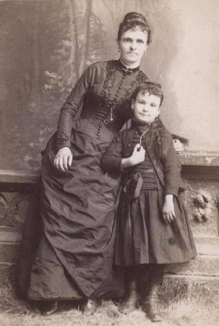 This portrait is undated. We thought it might have been taken in the late 1870s. A HBC reader thinks the 1880s is more likely. The simplicity of the photographer's lpgo we thought was a factor. Hopefully a reader who knows more about dresses will provide a more accurate estimate.