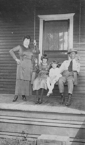 This family on their front porch is unidentified. The snapshot is undated. A contributor estimates the date at about 1918-19. We might have guess a little earlier, but it seems definitely from the 1910s. The photograph is a wonderful image because it was taken on the front porch of the family home. Note the swing. This was a very important part of America in the early 20th century.