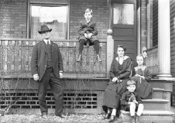 Figure 1.--Here we have a wonderful photograph of a Pittsburgh family in 1919. An interesting front porch scene in 1919 in Piitsburgh showing the Wymard family with their three children. |