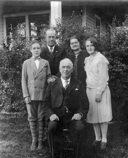 This family snapshot is undated. A reader estimates it was taken about 1928-30. The boy looks to be about 12 years old. He is wearing a knickers suit with golf socks (knee socks with a bold patern). He writes, "A slight hint that the photo is early is the way in which the knickers are only slightly bloused rather than more fully bloused which was characterisitic of knickers in the later 1930s and 1940s. The bow tie is another clue, I think." We also see boys of this period wearing knickers with long stockings of plain color, often tan, but usually younger boys. HBC when estimating these images generally assigns images with long stockings to the 20s anf knee socks to the 30s. We see younger boys wearing long stockings in the 30s, but except for formal occassions, knee socks were more common. The late 20s were a transitiinal period in which both long stockings and knee socks were worn. Note that his sister is wearing long stockings which suggests the 1920s, but could be the early 30s.