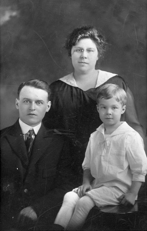 This is a portrait of Sam Harris with wife and son. The portrait is undated. The reader who provided the portrait dates it to about 1918-20. This is certainly possible. We tend to date in a few years later, although the late-10s is definitely possible. The reason is that the boy is wearing knickers. While knickers were very common for school-age American boys in the 1910s, we notice many younger boys still wearing knee pants. Knickers became more standard for younger boys in the 20s. This e boy, about 6 years old, but we do not know his name. He is dressed all in white--a blouse with sailor top, and string tie, above-the-knee knickers, and white long stockings. We at first thought the boy was wearing a sailor blouse. But note that it is not tucked in and blouse at the waist. So it looks more like a sgort sailor tunic. This wsas a style worn in the 1910s and early-20s. Tunic in general were wotn in the 1900s as well, but this is a short tunic so we would date it to he late-1910s and early-20s. Both bloomer knickers and staight-leg knee pants were worn with these short tunics.