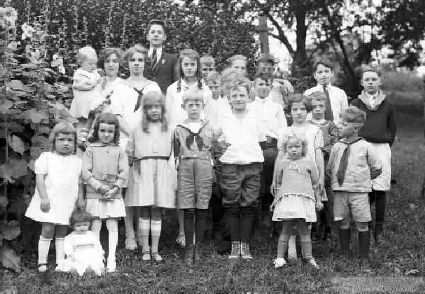Here we see a gathering of the Rupp family on July 4, 1922, in Pittsburgh. Quite a few children are present, wearing a variety of clothes. This family photograph is interesting for a variety of reasons. Especially notable here is the variety of the clothes.