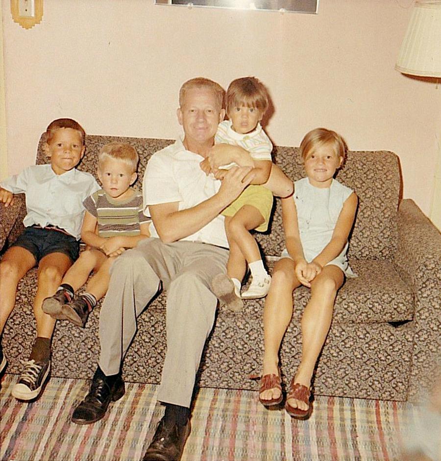 American had moved to the subburbs by the 1960s. This and the earlier nove to the cities meant that most of the country lived in nuclear families band given the mpbility of America, this was often at some distance fom the grandparents. Most American familes had cars and traditionally the whole family took off for a summer vacation. Often this meant a trip to the beach (Florida or California), national parks, historcical sights, and the grandparents. The only information we have here is that the roll of film was developed September 1968. September of course is when the kids go back to school. But it was probably taken just before in August while the family was on summer vacation. And it looks like grandad with the kids. There are four children, three boys and their older sister. They are all wearing summer vacation togs--shier pants and short sleeved tops. The younger childre wear T-shirts. The older boy weara a whire shirt. Notice how his shirt is buttined. Motice hos low-cut sneakers. In the 1950s, high-tops were more common. The baby wears white strap shoes. We are not sure just what big sister is wearing except for the sandles.