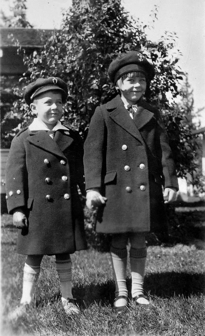 American boys have worn a wide variety of outerwear. The basic tyopes were coats and jackets although these terms were often used interchngably. Some of these garments had destinctive styling, the popularity of which varied over time. In addition to the types of outerwear, there was also destinctive styles. Some of these garments were gender speciggic. Others could be worn by both boys and girls. One very popular style was sailor styling. Sailor coats were not only worn wjth sailor suits. In fact sailor-styled coats continued popular well after sailor suits had ceased being a major style. Sailor coats could be worn by both boys and girls. Many like sailor styled reefer jackets appear to have been quite similar to European styles. Others such as the plaid lumber jacket appear to have been more American and perhps even more so Canadian in origin. A popular style by the 1920s were leather aviator jackets. Many short jackets, some with fur (or imitation fur by the 1940s) collars based primarily on the basic styling of the popular aviator jackets. Duffle coats cut longer than jackets have also been popular after World War II, but we believe that thery were primarily an English style. In recent years a variety of heavily insulated, often brightly colored jackets and coats have appeared influed by ski styling. Younger children might wear plain, short cut overcoats, usually wih doble breasted styling.