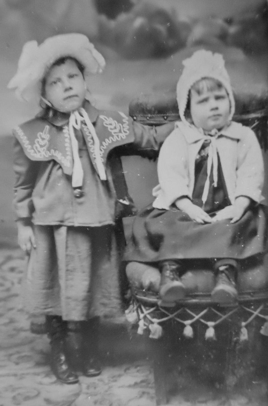 We note a variety of American headwear stles in the 1870s. Age was an important factor. There continued to be some elaborate styles for infants and todlers. These styles do not seem to be gender specific. We are not sure how to describe some of the headwear, many of which seem to be designed to keep the younger children warm. We see a tin-type of two unidentified children, we think in the 1870s. Mny appear to be vatiations of bonnets and tams. The images are odten not detailed enough to fully understand the nature of the headwear.