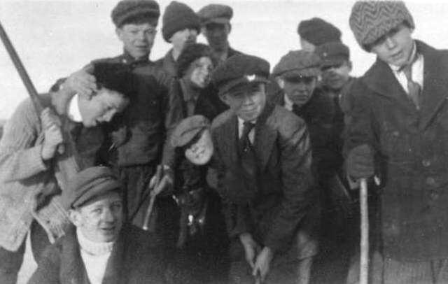We see American boys commonly wearing flat caps with a variety of suits. This was very cmmon, in part because at a tme when the flat cap became particularly popular it was still very common for boys to wear suits. Until after World War I boys very commonly wore suits for all sorts of occassions and activities. You can see boys here playing outside in suits (figure 1).