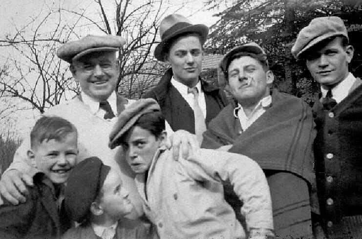 The flat cap was worn by aide range of ages in America. It was primarily a boys' and youth style, but we do see adults wearing them as well. Flat caps were worn by school boys of all ages. We do not see younger boys who have not yet begun school wearing them, at least not commonly. The various youngest boys in elementary (primary) school might wear other styles but by about grade three (about age 9 years) we normally see boys wrearing flat caps and they were worn by boys right through the teen years into high school. There does not seem to be a lot of differentiation concerning age levels among schoolboys as regards flat caps. Nor does there seem to have been any social connotations for boys. We see boys from a wide range of social levels wearing them. Social class connotations seem stronger in Europe. They were not the only headwear worn by boys and teenagers, but they were by far the most common. Flat caps were also worn by young adults. Here there were social-class differences. Well estblished adults would wear hats, but we seem working-class men wearing flat caps, at least the younger ones.