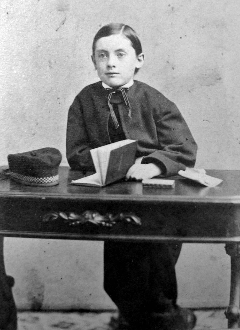 Glengaries were not a major style for American boys, but we do see some. They were a style a Scottish style imported from Britain. We believe they first appeared in the 1850s, but our archive is too limited to build a definitive time line yet. We note them in the 1860s, but we believe that they were first worn in the 50s. This was obviously the work of Queen Victoria who began to dress the princes in kilts and other Scottish attire. Gradually the Scottish fashion styles began to cross the Atlantic. Highland outfits were fairly limited in America, but the kilt suit proved o be a major style. At more or less the same time we begin to see kilt suits in America. While not common, we see some boys, mostly from from fashionable families, wearing them. They were most commonly worn with kilt suits. Boys also wore them with Highland kilts, but these were much less common than kilt suits in the late-19th century. The kilt suit was a very popular garment for younger boys and thus we do see a number of boys with Glengaries. Itis difficult, however, to assess just how popular they were. Most studio portraits we have found of boys wearing kilt suits do not have boys wearing or holding their headwear. Scottish outfits were not the only outfits with which Glengaries were worn. We also see them worn with cut-away jackets. We have one example of a Boston boy whose portrait looks to have been taken in the 1860s. These caps were worn with Scottish outfits, but other outdirs as well The boy here is wearing a cut-away jacket suit. Note that his cap matches his suit. He is wearing a Glengarry that is cut a little differently than modern Glengaries, it seems to be considerably wider than what we normally see. We note the button top and streamers which were common as well as the checkered cap band.