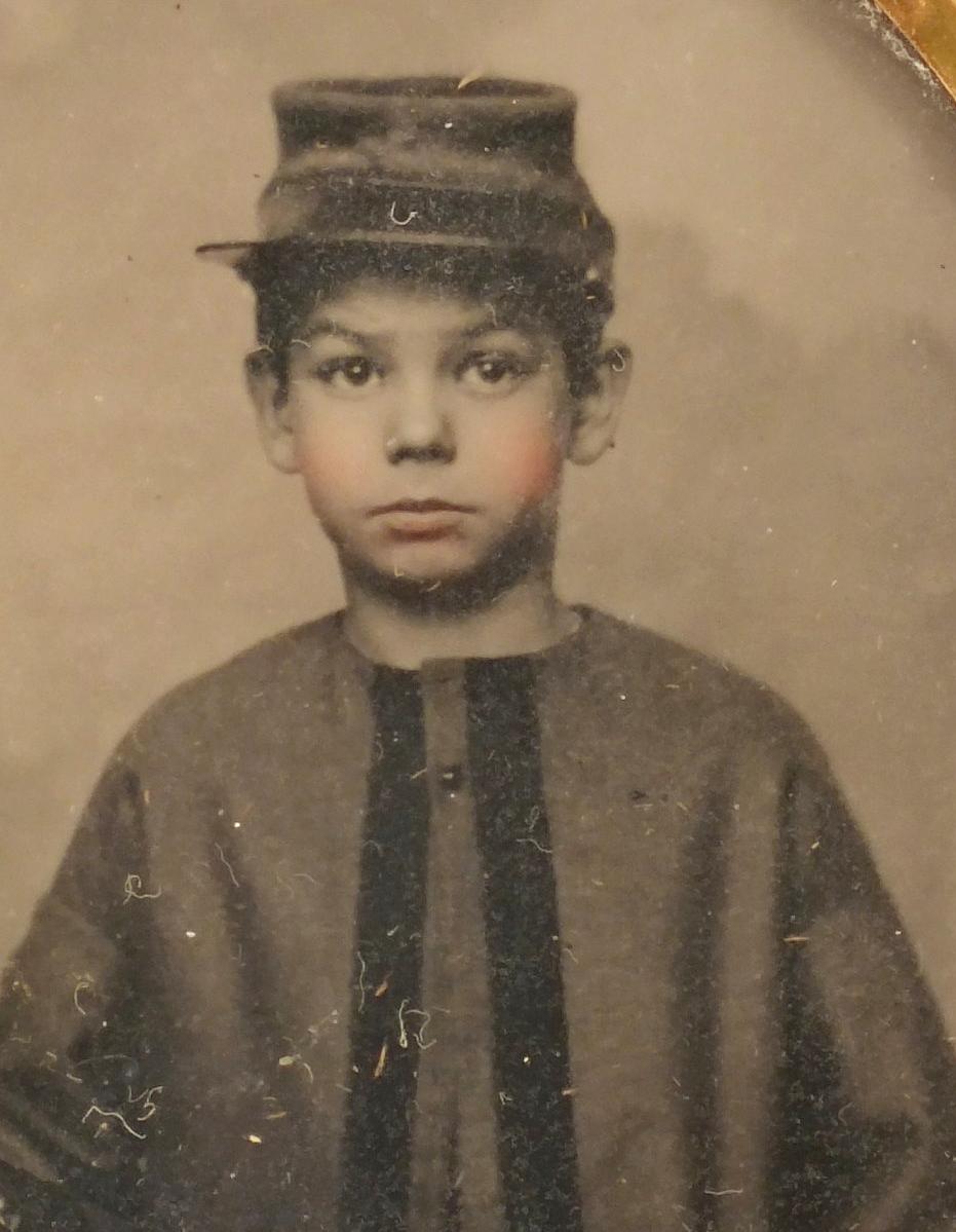 Americans will recognize the kepi as the Civil War cap. We do not see these caps being worn in America until the Civil War era. We see some just before the War in the 1850s. The kepi was adopted by borh the Federal and Condederate Armies from European militaries. We see boys wearing kepis during and after the Civil War. Here we see a southern boy about 1860 (figure 1). They appear to be most common in the 1860s and 70s, at least in the photographic record whichwas primarily studio photography. This probably gives a somewhat skewed indication of the chronological trends. Boys in studio portraits tended to wear whst mom chose. On their own when noy dressing up, we believe that the kepi was somewhat more popular. We see boys occassionaly wearing kepis throughout the late-19th century, but surprisngly few. Military schools used the kepi, but it does not appear to have been a particularly important style for most boys. We continue to see boys wearing kepis through the 1890s. A good example is Grant Lovecoy about 1880. Another exmple is the Smith boys about 1895. Another example is an unidentified Philadelphia boy in the 1890s. Some appeared to have been worn to school, although we have few details here. We rarely see kepis after the 20th century, except at Civil War events.