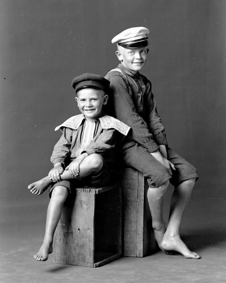 We notice a few portraits of American boys wearing what look like European student caps. Boys in Germany, Scandanavia, and other countries did not normally wear school uniforms. They did wear military-styled peaked caps. The caps often had detinctive styles and colored trim identifying the school and class. We note different styles in Germany and Scandinavia.We do not commonly see these caps in America, in part because they were commonly worn at secondary schools. And the families that sent children to secondary schools were the more established families less likely to emigrate to America. One destinguishing element of these caps was a leather brim or bill. We see leather bills earlier, but not by the late-19th century. American caps were almost always made with cloth brims. Thus we do not see very commonly with American boys caps by the late-19th century. We suspect that boys wearing them came from relastively recent immigrant families.