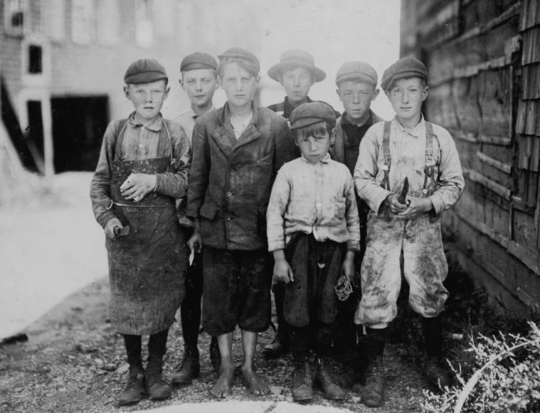 There may have been a upper-class association with these caps when they first appeared. They were initually a Britiosh import, but the caps were not widely worn in the 1880s abd early-90s. We see more boys wearing them in the late-1890s. We begin to see American boys wearing these caps in any number around the turn-of-the 20th century, By this time there does not seem to have been any social class connotations associated with them. The group of boys on the precious page is a good example. They look to be boys from fairly average circumstances. We note a lot of images of working boys wearing these caps along with other styles in the 1900s and early-1910s. Here we see boys working as fish cutters in 1911 (figure 1).