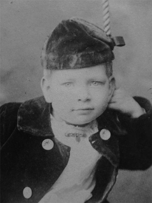 This is a cap thst we have mno idea what to call. It is a brimless cap with tapered sides resaching a point or a near point at the crown. The best known example is a dunce cap. But the examples we have foind are much shorter than the classic tall dunce cap. It was a relatively rare cap style, but e have noted a few examples. Smme we note was done in velvet and was a relatively soft cap worn by a young boy in a white dress during the 1880s. It is a little difficult to assess the actual shape of the cap from the single image. The cap here seems to have a cap that folds down.